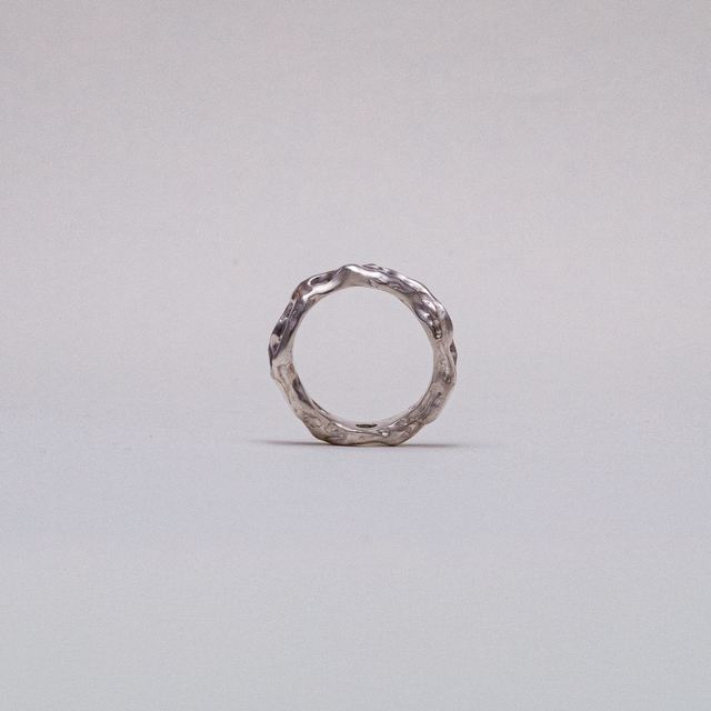 The Liquid Metal Ring, inspired by movement, light and reflection, capturing the fluid beauty of molten metal in an organic, solid form.